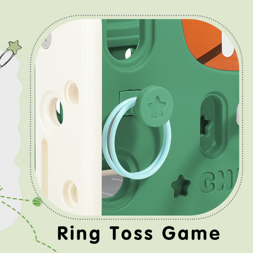 - The basketball hoop on the side of the slide adds extra fun to the playtime. Your children can improve their shooting skills and practice their aim.The bottom also provides a tunnel for children to cross and play. Let the kids get in and out of the play equipment effortlessly.